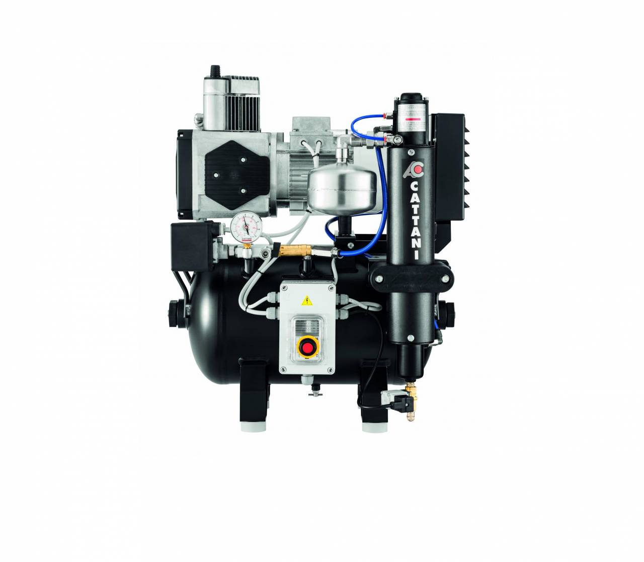 Cattani AC100 on ühesilindriline õhukuivatiga kompressor, mis ei tarbi õli ja on võimeline tootma kuiva steriliseeritud suruõhku. Kompressor on mõeldud kasutamiseks mitte enama kui ühe operatsiooni ajal korraga. Kompressoril on 5 aastane garantii.