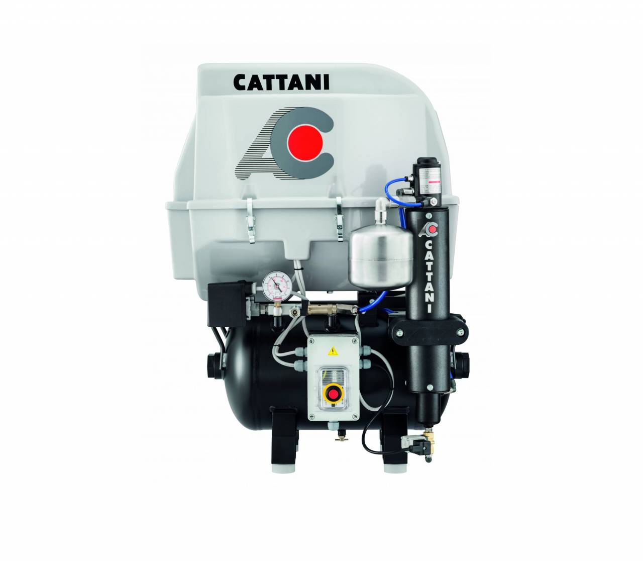 Cattani AC200Q on kahesilindriline õhukuivatiga ja mürakattega kompressor ja mürakate, mis ei tarbi õli ja on võimeline tootma kuiva steriliseeritud suruõhku. Kompressor on mõeldud kasutamisekskuni viie operatsiooni ajal korraga. Kompressoril on 5 aastane garantii.