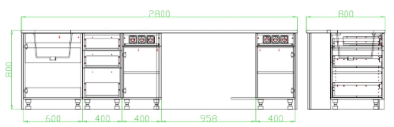 - Töölaua pikkus 2800 mm