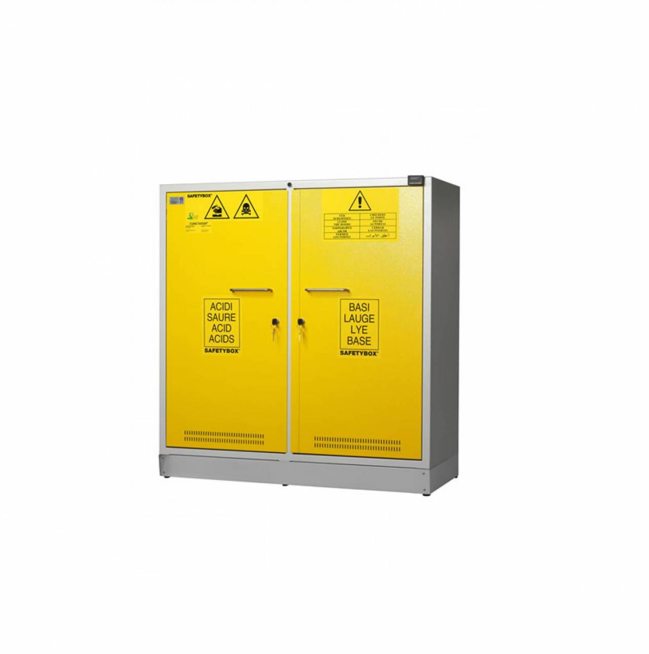 Toode on kaetud happekindla epoksiidvärviga ning sellel on termiliselt kaitstud aspiraator. Kaks eraldi sektsiooni võimaldavad korraga hoiustada nii happeid kui ka alused.